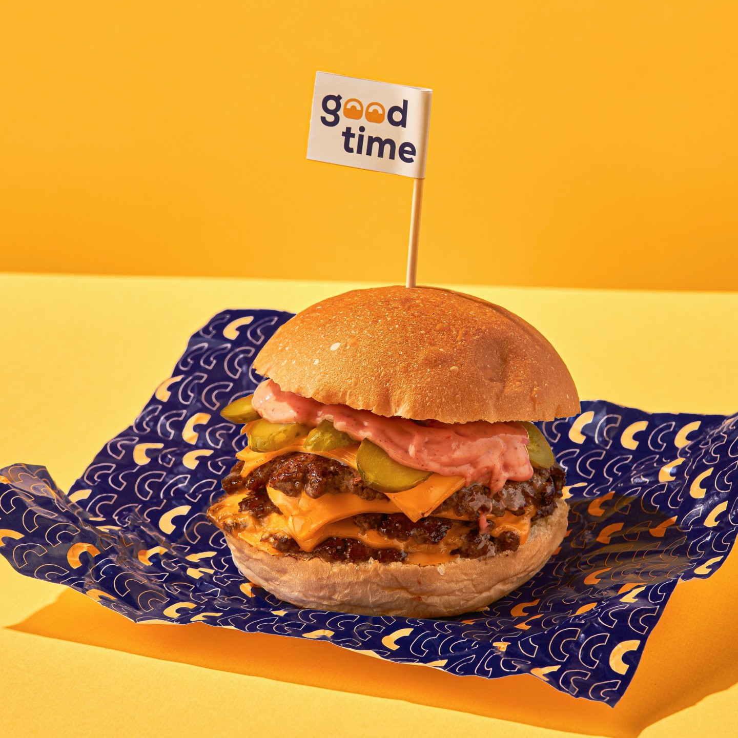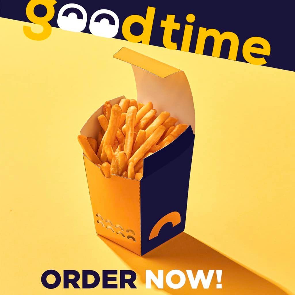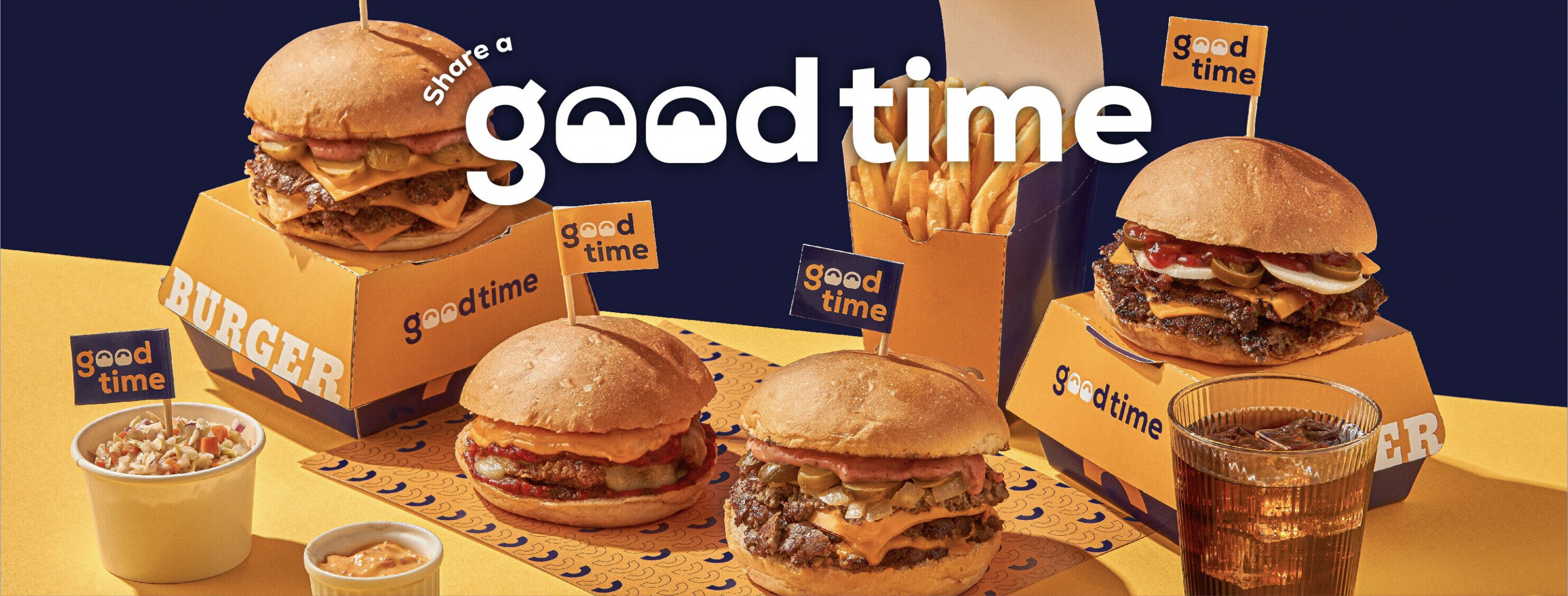 Các yếu tố đồ hoạ được sử dụng tập trung vào sự vui vẻ, gần gũi của thương hiệu và các nguyên liệu của bánh burger như hành, pho mai, cà chua, xà lách… Các yếu tố này mang tinh thần kết nối giữa ẩm thực và cảm xúc của GOODTIME.